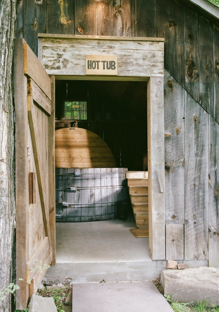 Set across 88 acres of open pastures, forested trails, and a winding creek, the property encourages both exploration and stillness. Guests can relax in a cedar hot tub tucked inside a restored maple syrup hut, take a dip in the spring-fed pond, or paddle out by rowboat or canoe. A fully stocked arts and crafts barn offers space for creativity and quiet making, while a wood-fired sauna by the pond provides a place to reset. In the summer months, guests also have access to the Camp Singers Pool Club, a private off-site oasis just 10 minutes away.